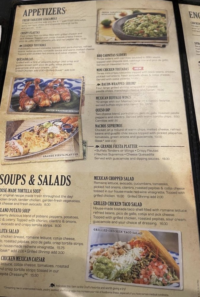 Start with their delicious queso dip, featuring a creamy two-cheese blend or opt for the quesadilla, crisply grilled with a hint of garlic. For a heartier option, the Grande Fiesta Platter presents an impressive mix of flautas, nachos, and wings.